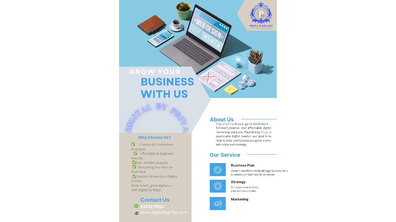 We at Digital by Priya think that every company, regardless of size, should have a strong online presence. With prices as low as ₹3999, we specialize in building professional, reasonably priced websites that support the growth of startups, small enterprises, and individual brands online.